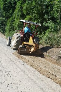 Ação ocorreu neste fim de semana, na zona rural do distrito de Pirabeiraba, em Joinville. Cansados de conviver com os buracos, família de agricultor resolveu patrolar a estrada do Pico sozinha.