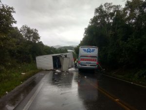 O condutor do caminhão morreu no local, enquanto o motorista do ônibus, que saiu de Florianópolis e seguia para Lages, na Serra catarinense, ficou preso às ferragens.