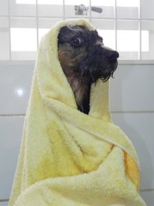 No inverno, é bom diminuir a frequência de banhos que, de preferência, devem ser com água morna (cuidado com a água quente demais!). Após o banho, é imprescindível secá-lo. Se for ao sol, escolha dia e horários mais quentes, mas antes retire o máximo possível da umidade com uma toalha. Se for usar o secador, cuidado com a temperatura. Mantenha o animal dentro em local fechado pelo menos 30 minutos antes de o liberar para a área externa, para evitar o choque térmico. Atenção: Não molhe o animal se o dia estiver muito frio. (Foto: tudosobrecachorros.com.br)