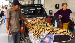 O repórter Elson Lopes, do TopElegance, flagrou o momento em que uma mulher foi levada às pressas ao Hospital São José em cima de um colchão, colocado na carroceria de uma picape, após não conseguir atendimento pelo SAMU.