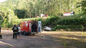 Apiúna – Carro bate em poste na BR-470, capota e motorista morre